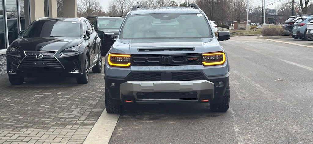 Sonic Gray Pearl 2026 Honda Passport TrailSport Elite Blackout AWD 10-Speed Shiftable Automatic 18/23 City/Highway MPG {{Certified?}} Voss Hyundai: Built on Trust, Driven by Integrity. Come experience the difference! **Some vehicles may be subject to manufacturer safety recalls that for various reasons may not be repaired prior to sale. You may also check for open recalls at www.safercar.gov.